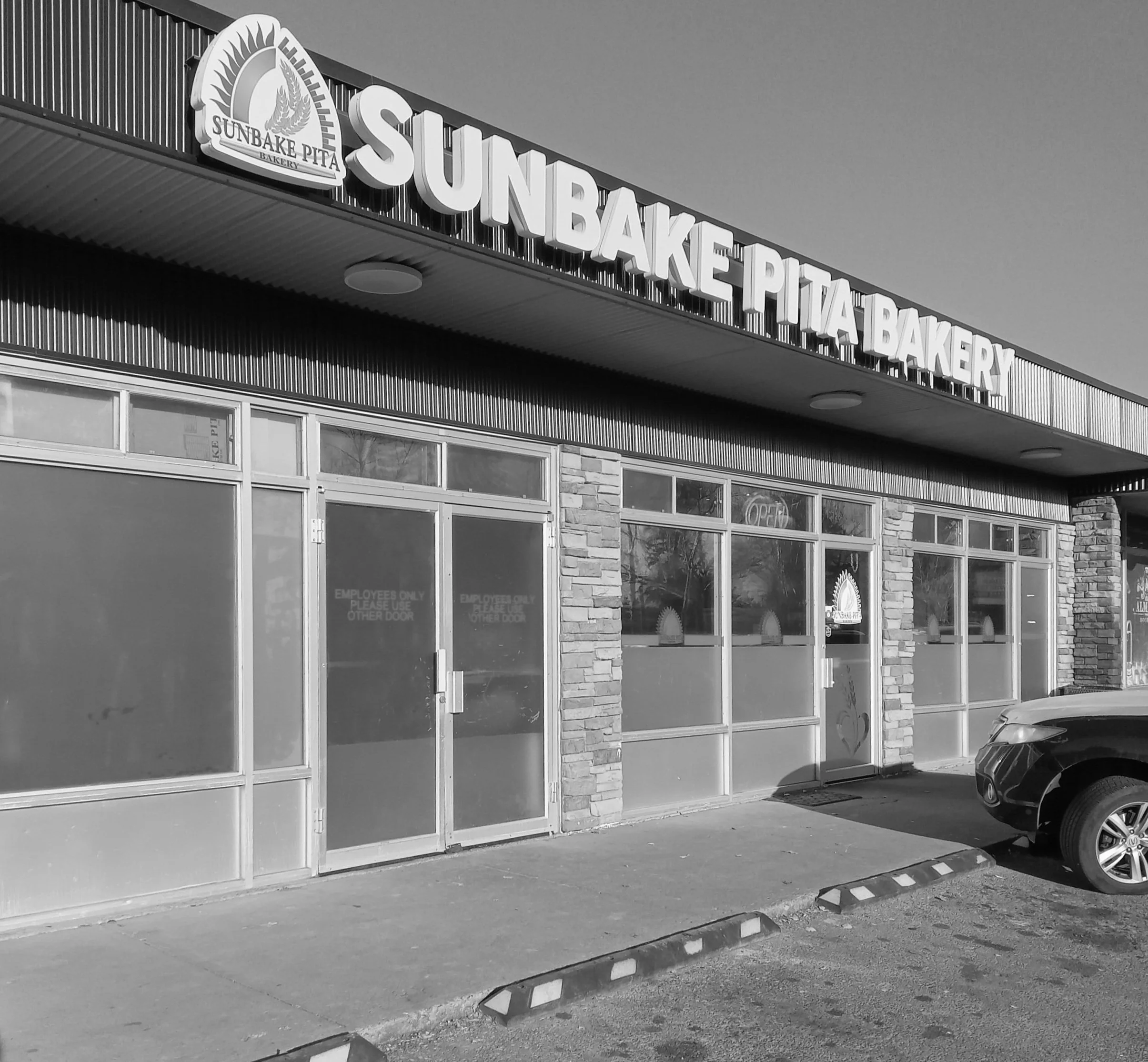 Northbound 97 Street gently crests the Yellowhead overpass then dips beneath the CN line before emerging in Rosslyn, a hub of Islamic culture in Edmonton. It is a flat landscape of post-war bungalows, but to the south the sharp geometry of Al Rashid Mosque reaches above the soccer fields and rowhouses. The strip-malls along 134 Avenue include halal butchers, a hookah supplier, the El Safadi super market, and one of Edmonton’s great lunch counters: Sunbake Pita Bakery. The quality, consistency, and variety at Sunbake can reward not just multiple visits, but years of patronage.